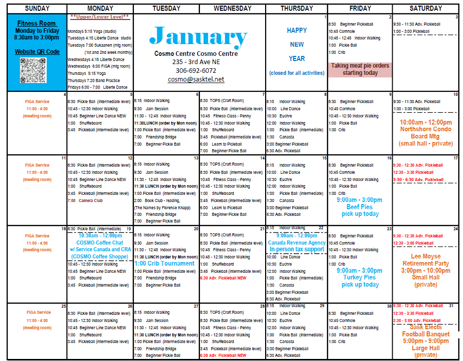 Providing a facility with activities for the older adults of Moose Jaw and surrounding area.