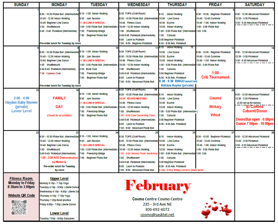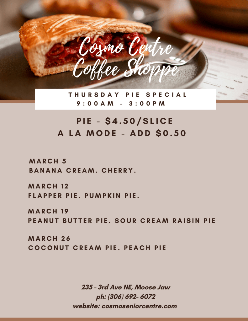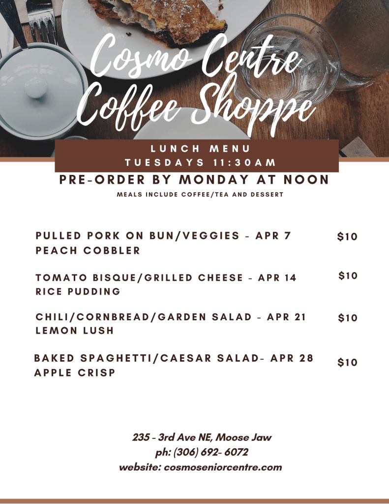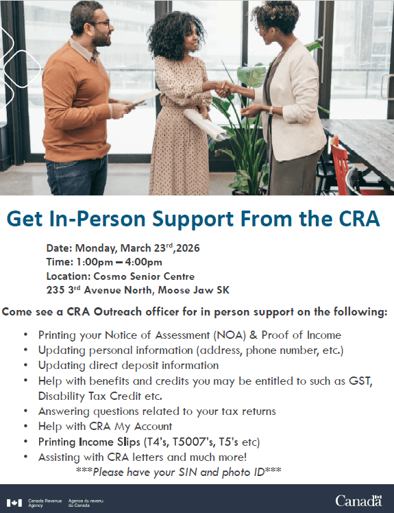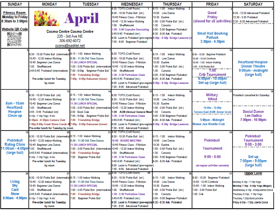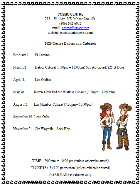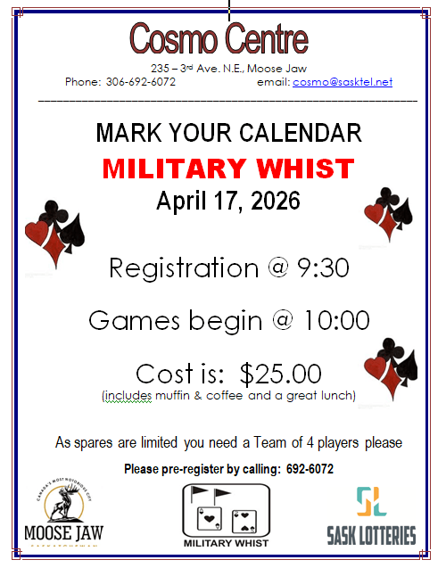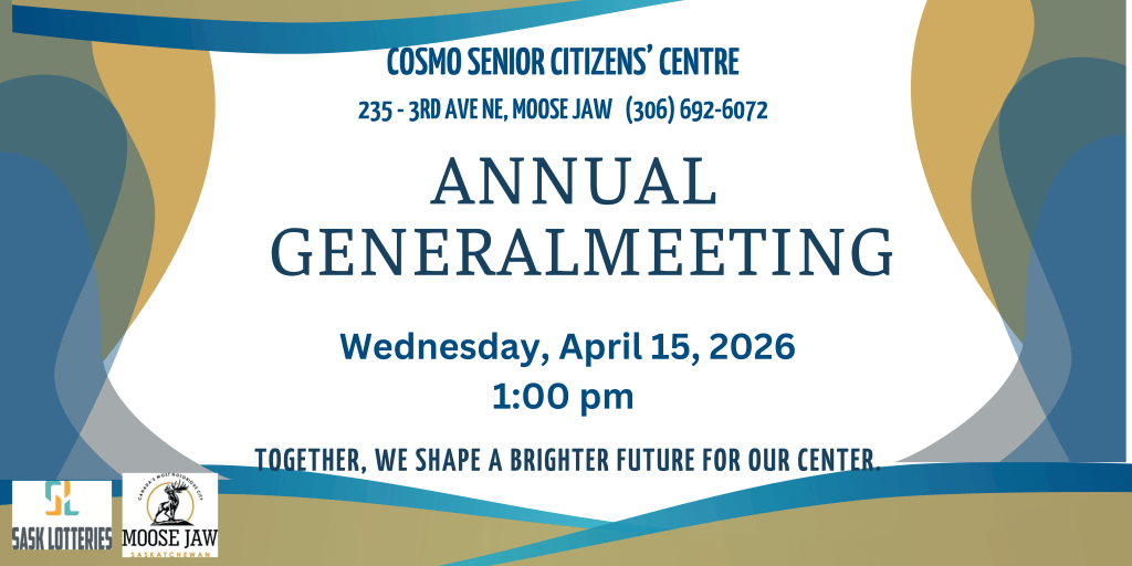 The Cosmo Centre mission is to promote the dignity, well being, and independence of seniors in Moose Jaw and District by providing resources, classes, events, programs, and supporting age-friendly policies.